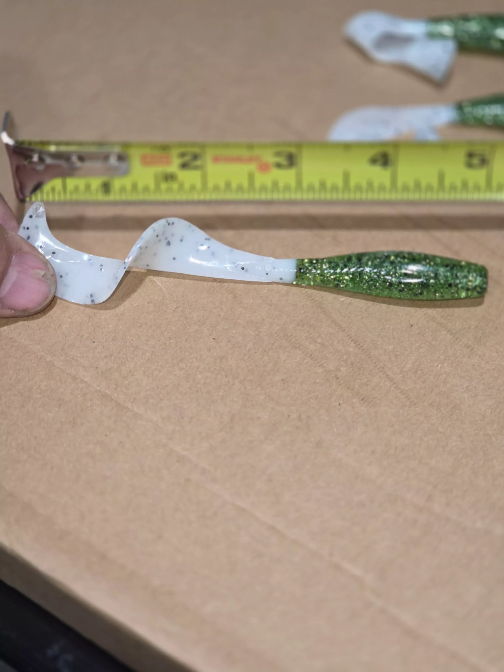 5" Curly tail action grub. Salt infused with tons of action and comes in many colors. Extends out to 5 inches. They come in packs of 5 so you can try them out without purchasing a large pack. Happy fishing!