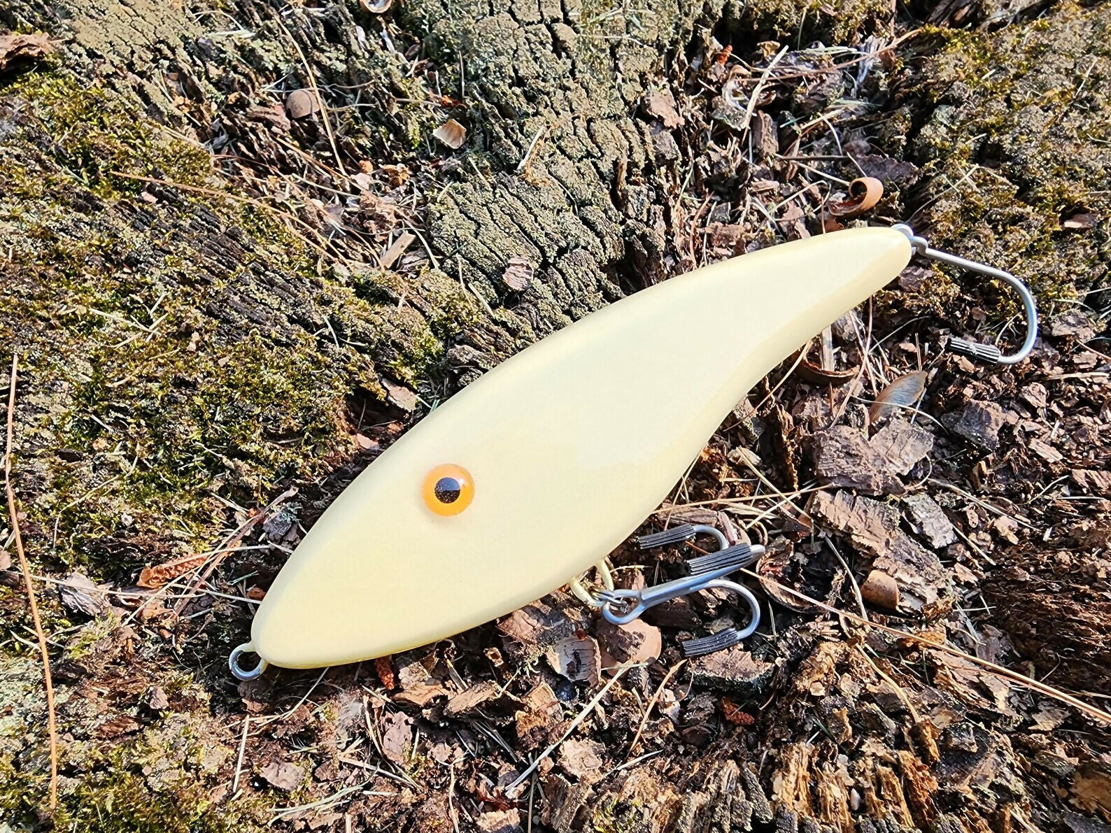 The V2 BODY SNATCHER is a 6.5", 4oz. handmade glide bait that is constructed using solid resin and built to brawl. It is upgraded with a slightly bigger body and sharper profile with even more glide action and stability in the water. The V2 Body Snatcher is outfitted with a larger VMC belly hook and VMC single rear hook to protect both you and the fish. The V2 Body Snatcher is a medium sinking glide bait with action that will surely entice BIG predatory fish. Perfect for striped bass, bluefish, musky, pike, and many more. This lure can be used with both medium/heavy and heavy setups, and is perfect for the surf, boat, canals, and even freshwater situations. So wether you are cruising through the back bays or tackling the ocean, the Body Snatcher will definitely live up to its name.