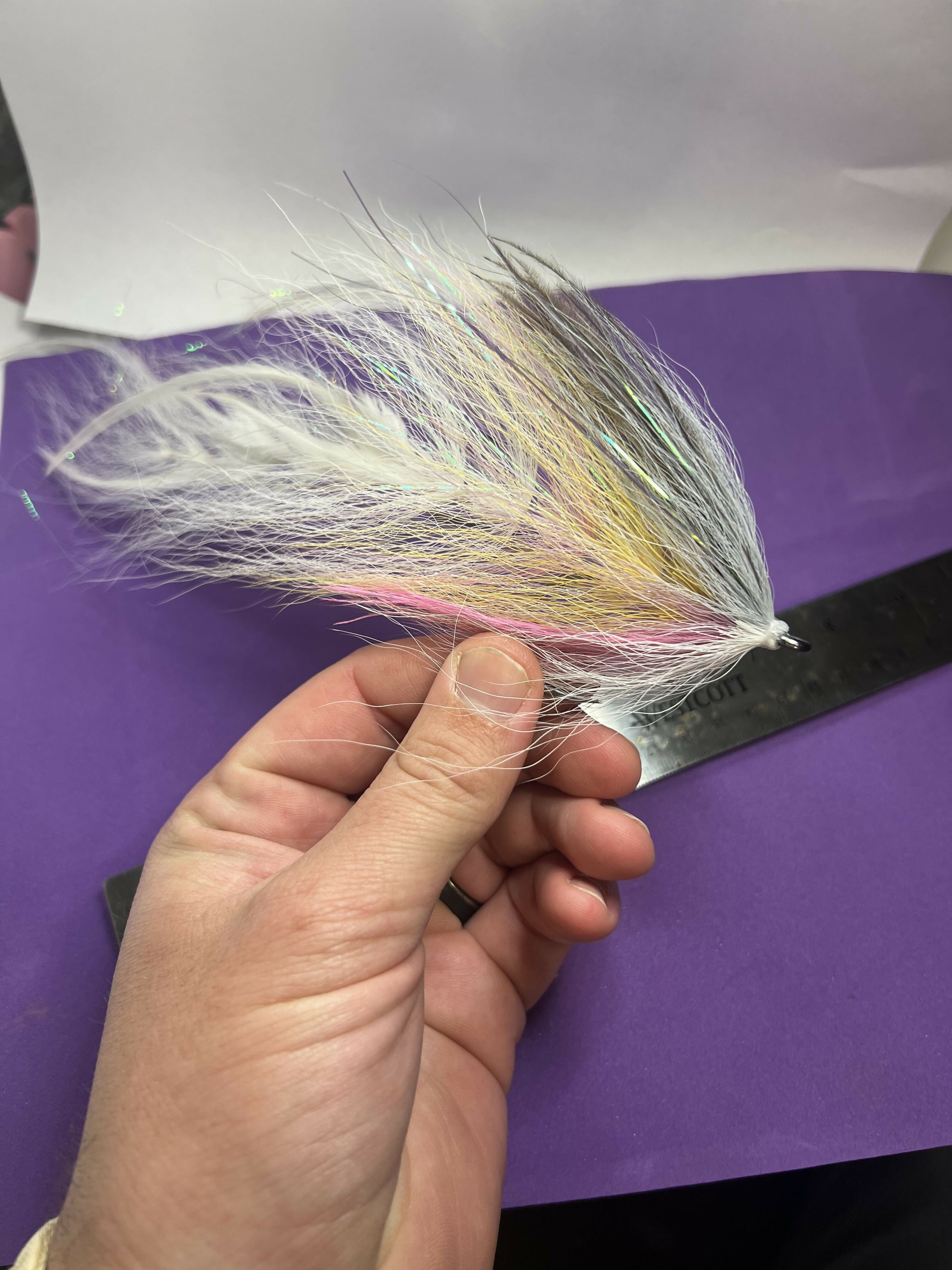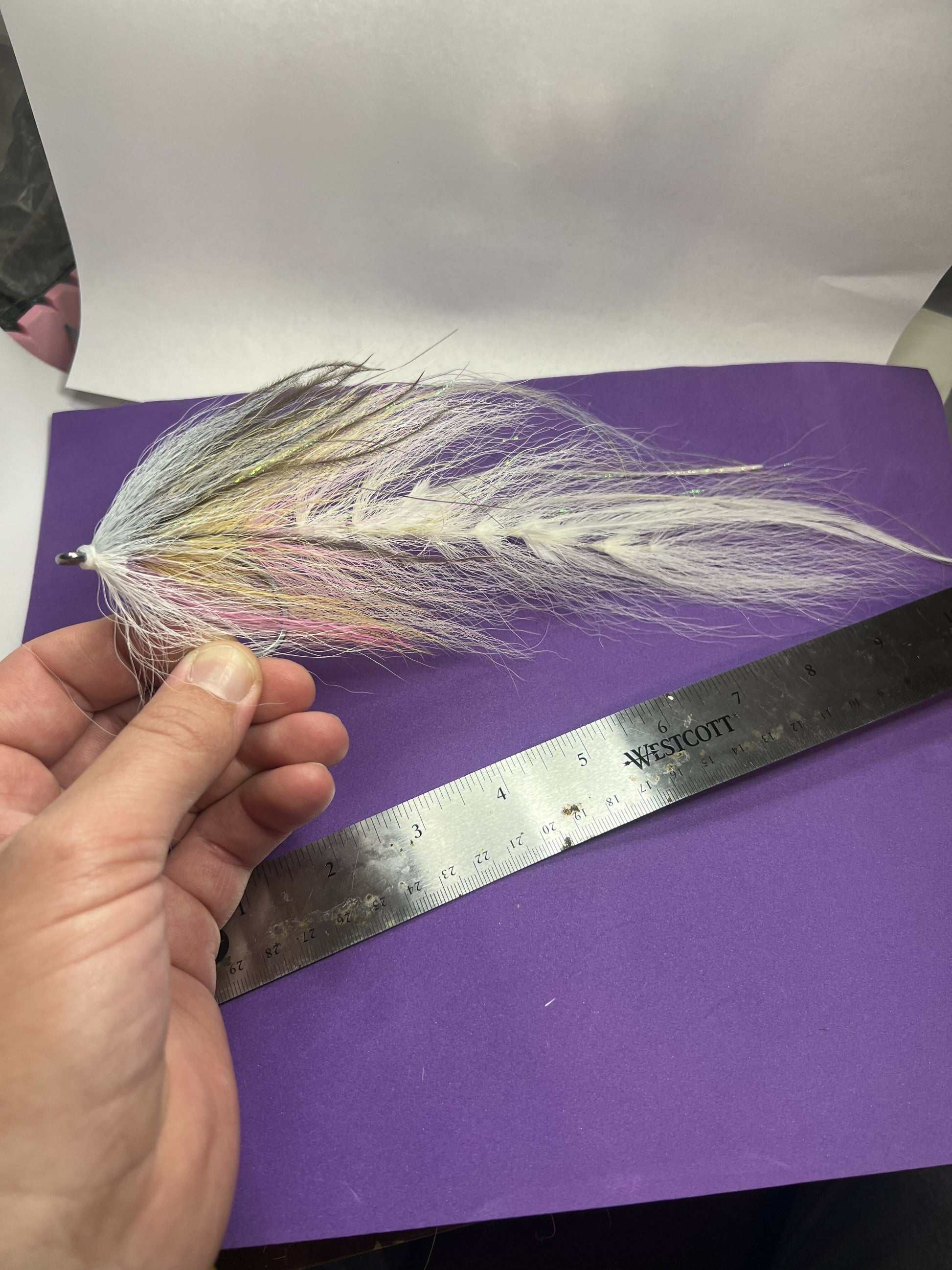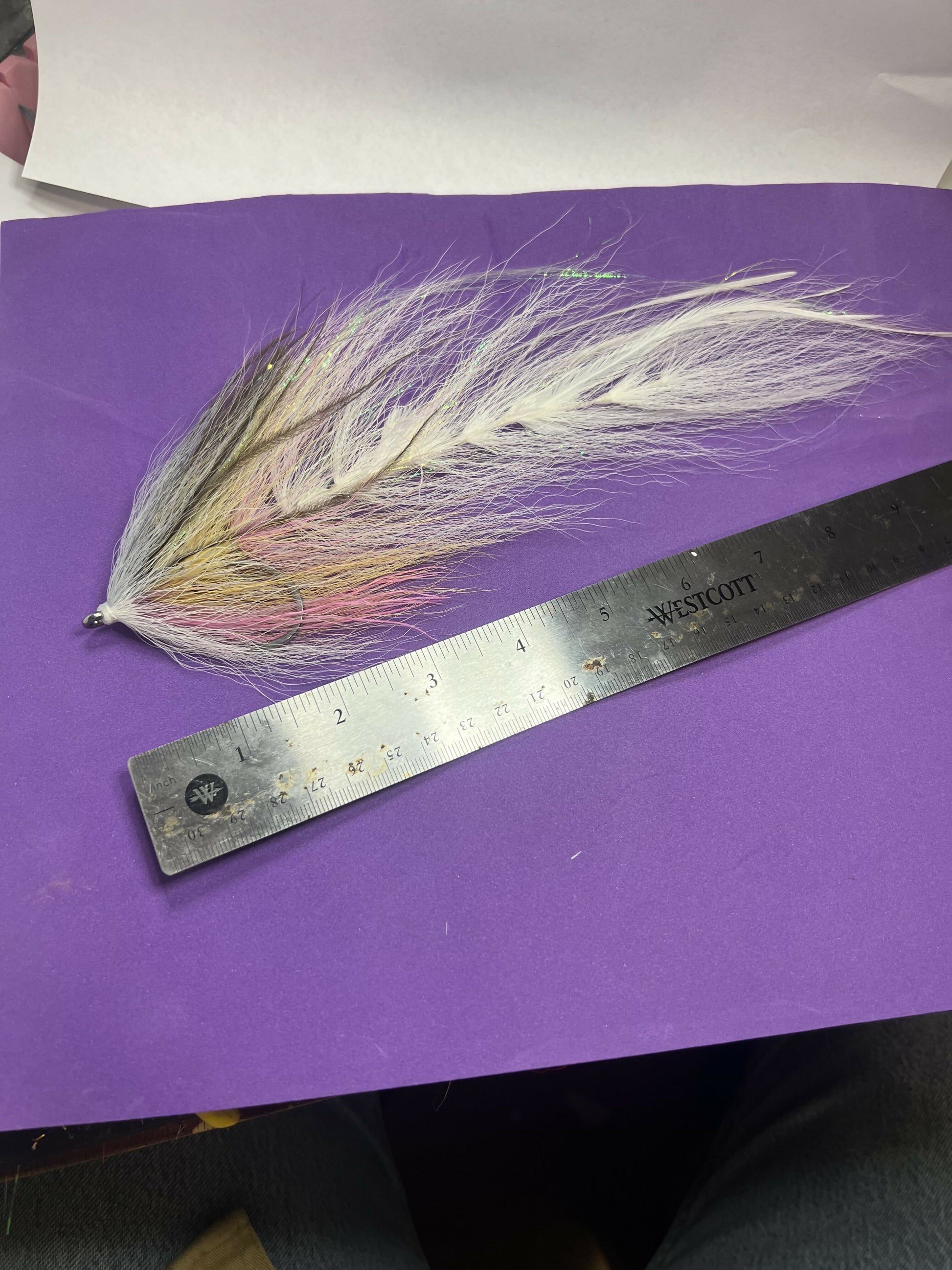 Beast Fleye Tied with Premium Northern Bucktail and Ewing Saddle Hackle. Tied on 40lb Hard Mono extension allowing for excellent movement.