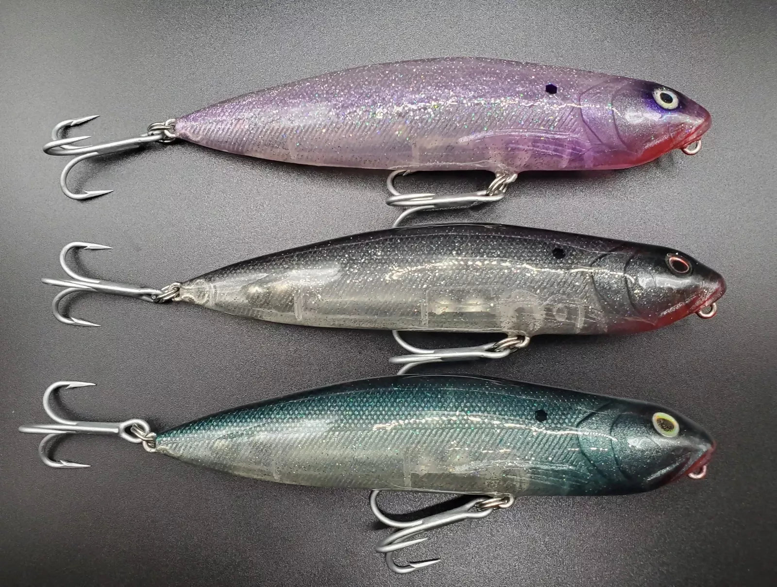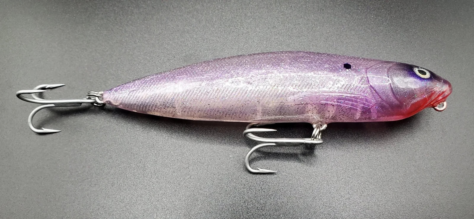 Upgraded 4X VMC treble hooks and heavy duty split rings. Designed and individually painted and crafted by Artisan/Angler. Slight variations may occur.