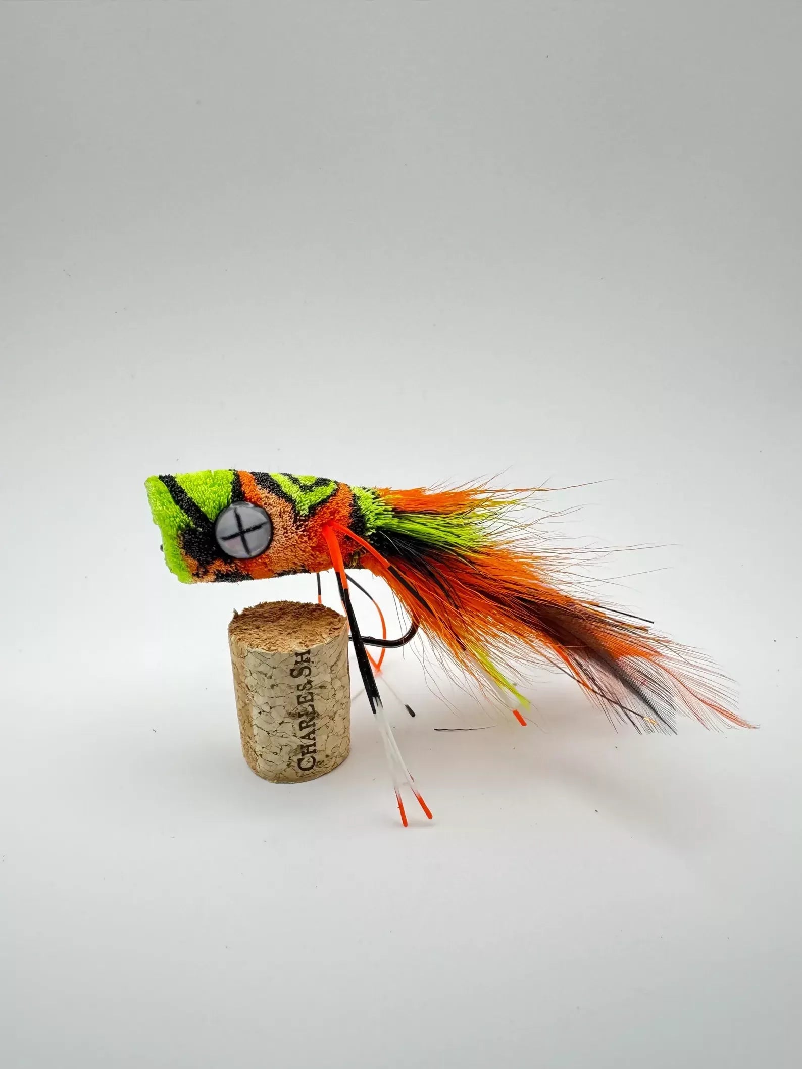 Hand tied deer hair popper in fire tiger. Tied on a 1/0 Gamakatsu B10S hook. Perfect for largemouth and smallmouth bass. Tied in Southern Illinois.