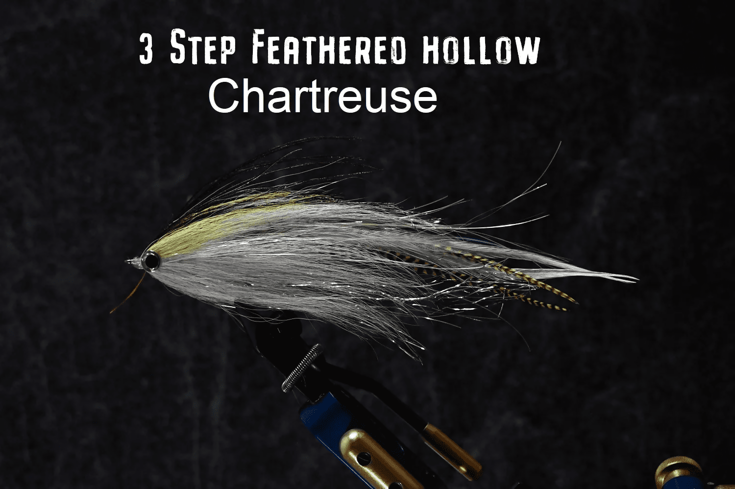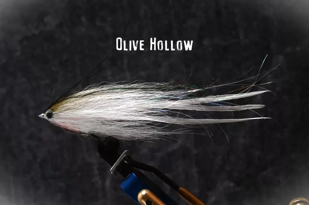 Reverse Tied Three Step Hollow Fly, tied on a 4/0 Hook with long saddles as a tail wing,long bucktail fibers as a collar and 3D tab eyes.